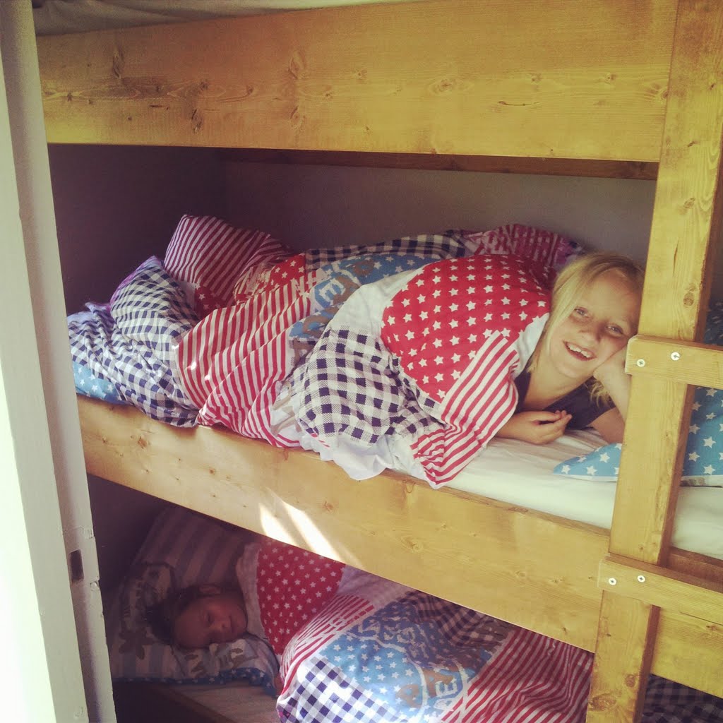 Het is een compleet ingericht vakantiehuisje op wielen, van alle gemakken voorzien, met een bedstee, een 3 hoog stapelbed, een ingericht keukentje (kookplaat, koelkast en koffiezetapparaat) en een wc. Dit alles met een nostalgisch tintje.