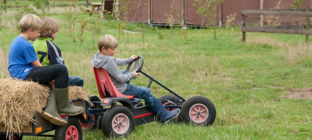 Doordat er geen grote machines aanwezig zijn is het perfect voor kinderen om het van dichtbij te zien en te beleven. Ze kunnen zich de hele dag vermaken in de knuffelschuur met konijnen, cavia’s en kippen. In het kippen hok kun je een vers eitje rapen. Aangezien alle Tenten uitkijken over de centrale speelweide is het gemakkelijk om de hele familie in de gaten te houden, maar tegelijkertijd ook om zelf te genieten vand e rust en omgeving.